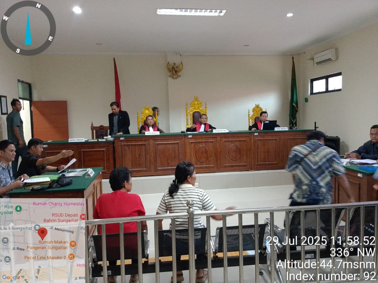 OrcaNews Sungailiat โ Sengketa lahan di Desa Rebo, Kecamatan Merawang, Kabupaten Bangka kembali memasuki babak baru di meja hijau. Pengadilan Negeri Sungailiat menggelar sidang lanjutan antara Sonilyus Tjen alias Afat selaku penggugat melawan Susen sebagai tergugat, Selasa (29/7/2025).