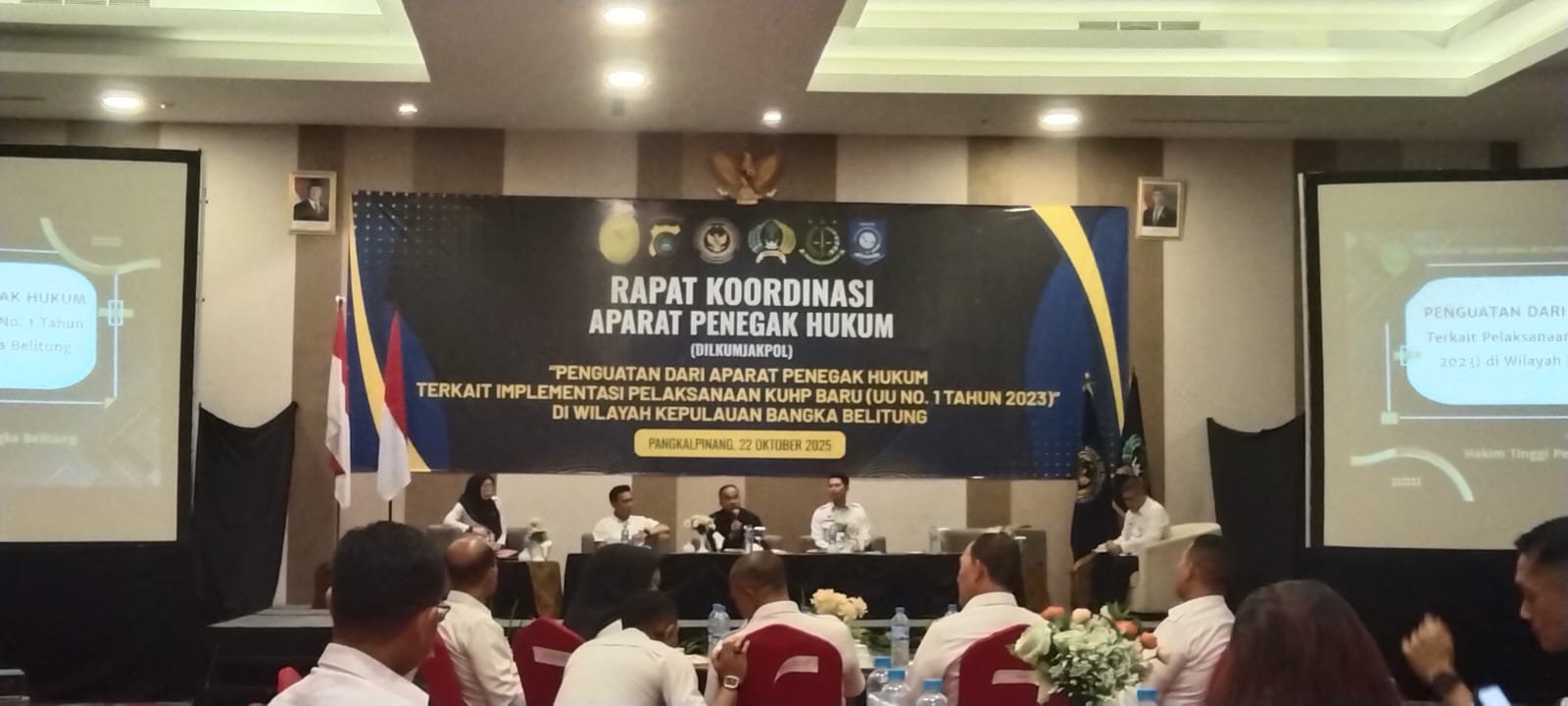 Kegiatan ini dihadiri oleh Narasumber dari unsur Kejaksaan, Kepolisian, Pengadilan, Biro Hukum Provinsi dan Pemasyarakatan, dengan tujuan memperkuat sinergitas dan koordinasi antar Aparat Penegak Hukum (APH) dalam penegakan hukum yang berkeadilan di wilayah Kepulauan Bangka Belitung.