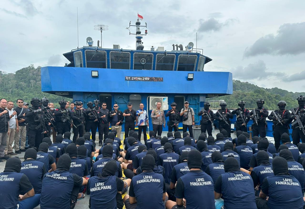 OrcaNews Pangkalpinang,INFO_PAS – Direktorat Jenderal Pemasyarakatan (DITJENPAS) melalui Kantor Wilayah Direktorat Jenderal Pemasyarakatan Kepulauan Bangka Belitung melaksanakan langkah strategis dengan melakukan pemindahan terhadap 60 orang Narapidana resiko tinggi Kasus Narkotika ke Lembaga Pemasyarakatan (Lapas) Super Maximum Security Nusakambangan,Cilacap, Jawa Tengah(18/09).