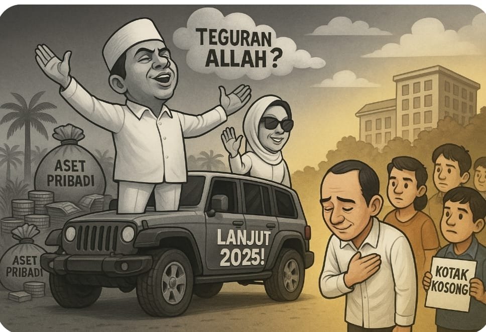Namun yang membuat publik semakin kecewa adalah sikap Molen pascakekalahan. Tak ada kata maaf. Tak ada refleksi jujur. Yang muncul justru unggahan penuh percaya diri di media sosialβkarikatur dirinya dan istri di atas mobil dengan tulisan βkita akan lanjut tahun depan.β Disusul pamer kekayaan pribadi: kebun sawit, aset propertiβseolah ingin berkata, βSaya kalah, tapi saya tetap kaya.β