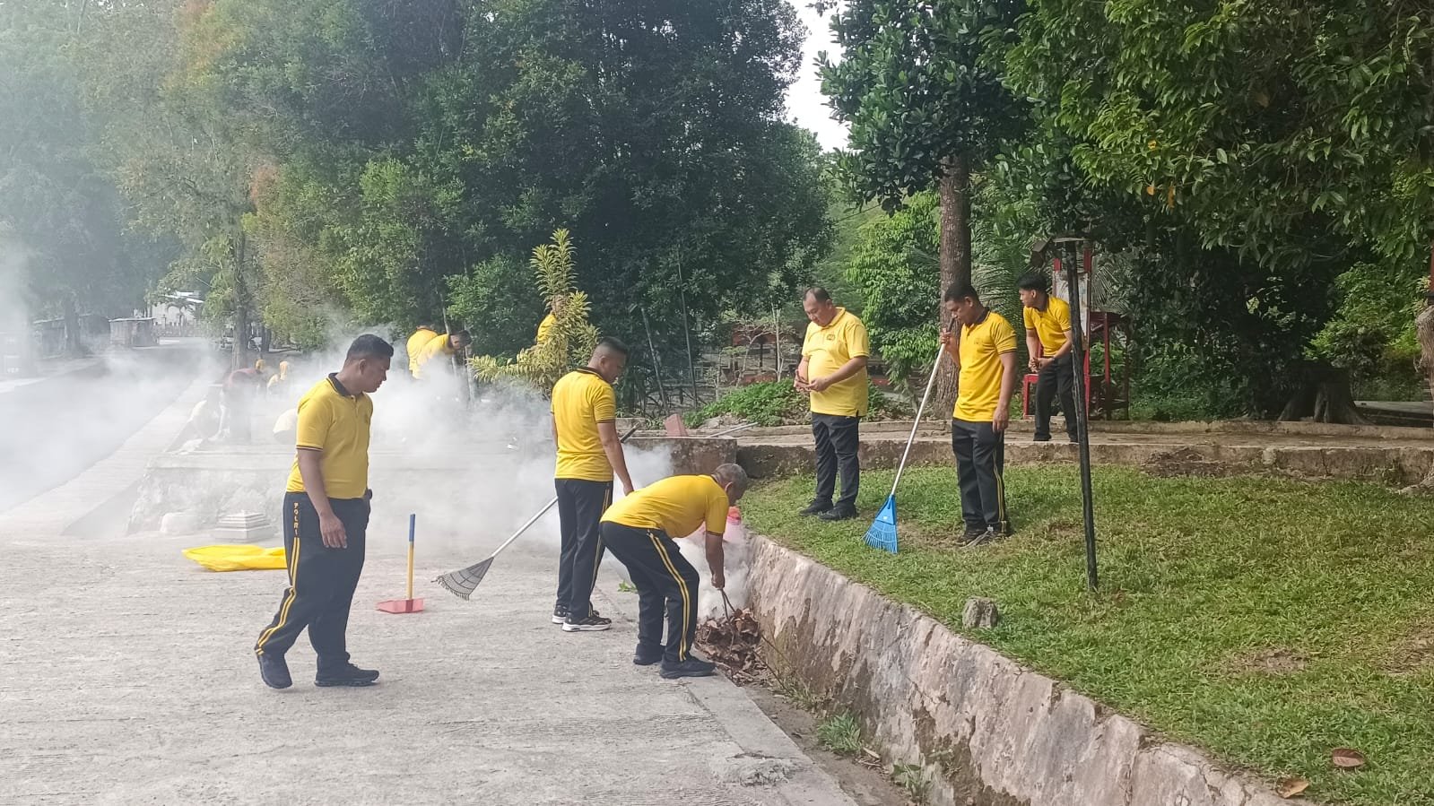 OrcaNews Bangka – Dalam rangka menjaga kebersihan lingkungan sekaligus mempererat kebersamaan antar personel, Polres Bangka melaksanakan kegiatan kurve (kerja bakti) di kawasan Hutan Kota Sungailiat, Jumat (27/3/2026) pagi.