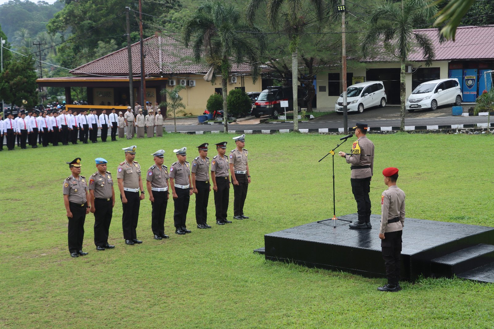 Upacara berlangsung khidmat dan dipimpin langsung oleh Kapolres Bangka, serta dihadiri oleh Waka Polres, para Pejabat Utama (PJU), para Kapolsek jajaran, Bhayangkari, serta keluarga personel yang naik pangkat.