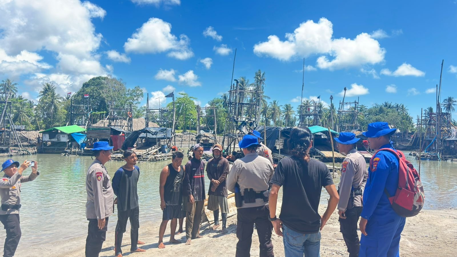 Bangka β€” Tim gabungan Polres Bangka memberikan himbauan kepada pemilik dan pekerja tambang jenis ponton rajuk tower yang beroperasi di DAS alur nelayan 2 serta di pesisir Muara Air Kantung Jelitik, Kecamatan Sungailiat, Kabupaten Bangka, Jumat (24/4/2026).