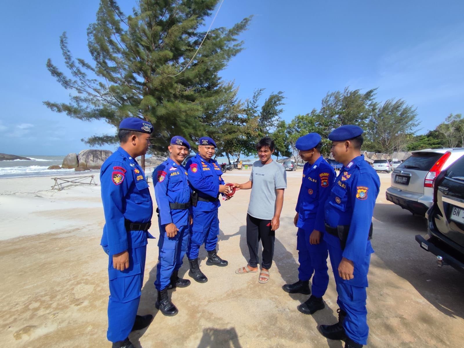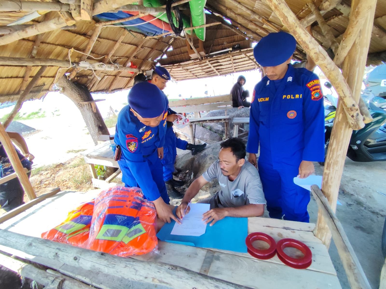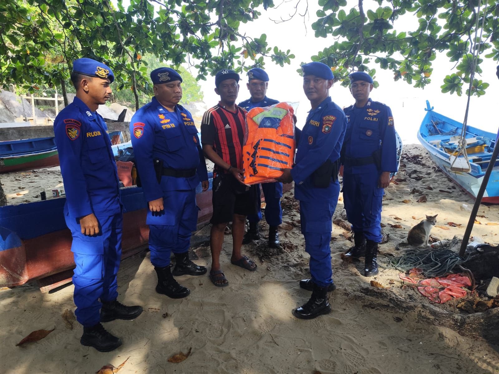 Sebagai bentuk kepedulian dan upaya preventif, Sat Polairud Polres Bangka turut membagikan sarana kontak keselamatan diri kepada para nelayan berupa life jacket dan alat pancing.