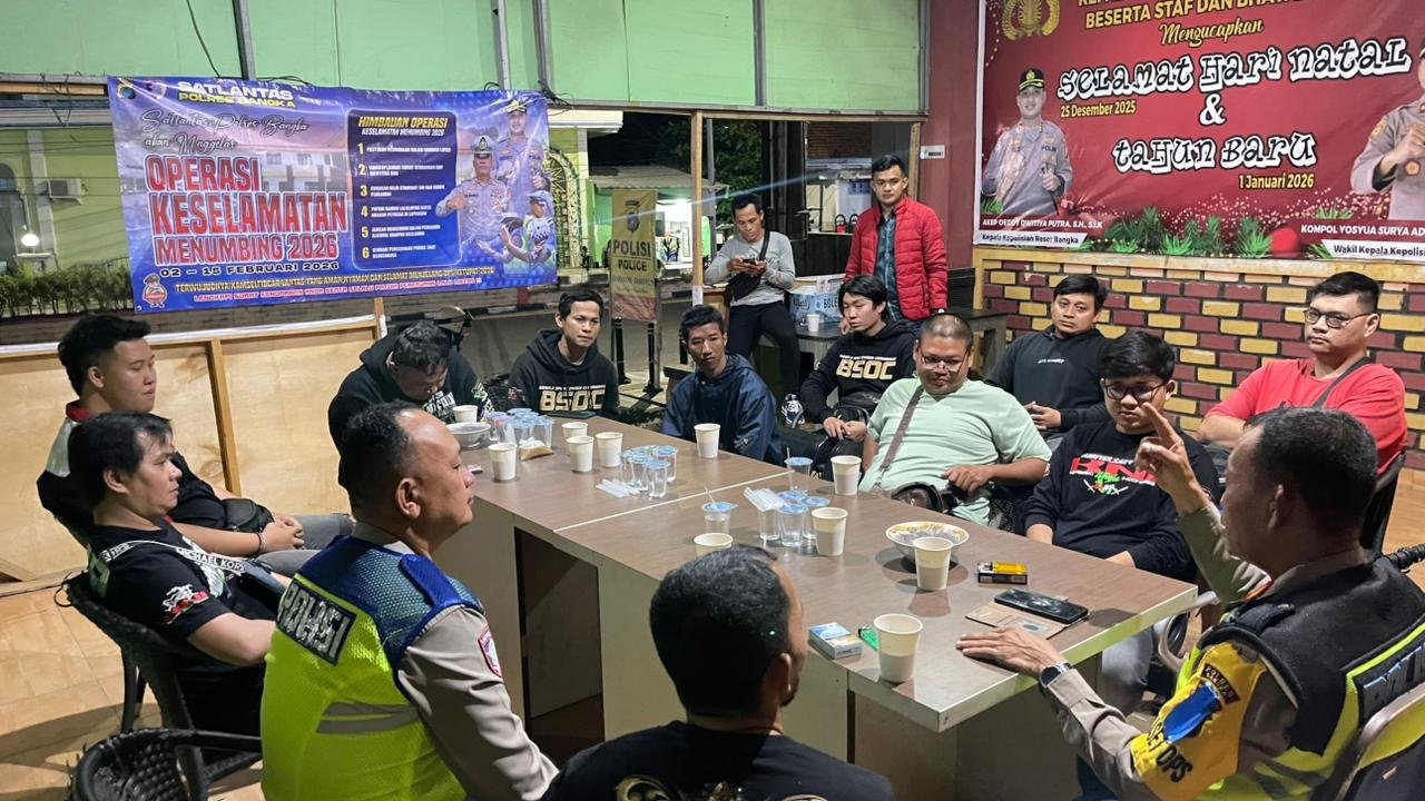OrcaNewsSungailiat – Satuan Lalu Lintas Polres Bangka melaksanakan kegiatan Police Goes To Community dalam rangka Operasi Keselamatan Menumbing Tahun 2026 bersama Komunitas Motor Kawasaki Ninja Indonesia (BPNC).Kegiatan tersebut berlangsung pada Jumat malam (6/2/2026) bertempat di kawasan BKPM Sungailiat.