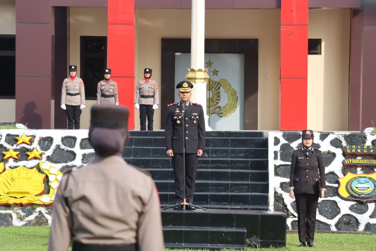 Upacara berlangsung dengan khidmat dan diikuti oleh pejabat utama Polres Bangka, personel Polri, serta Aparatur Sipil Negara (ASN) Polres Bangka.